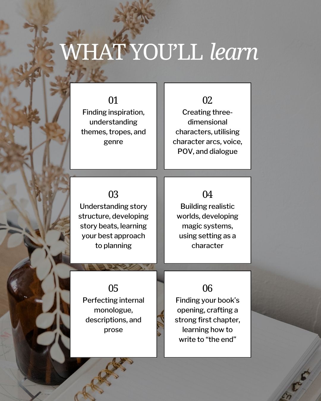 A 125-page workbook to help you understand how you have answered your intentions and goals for the novel.